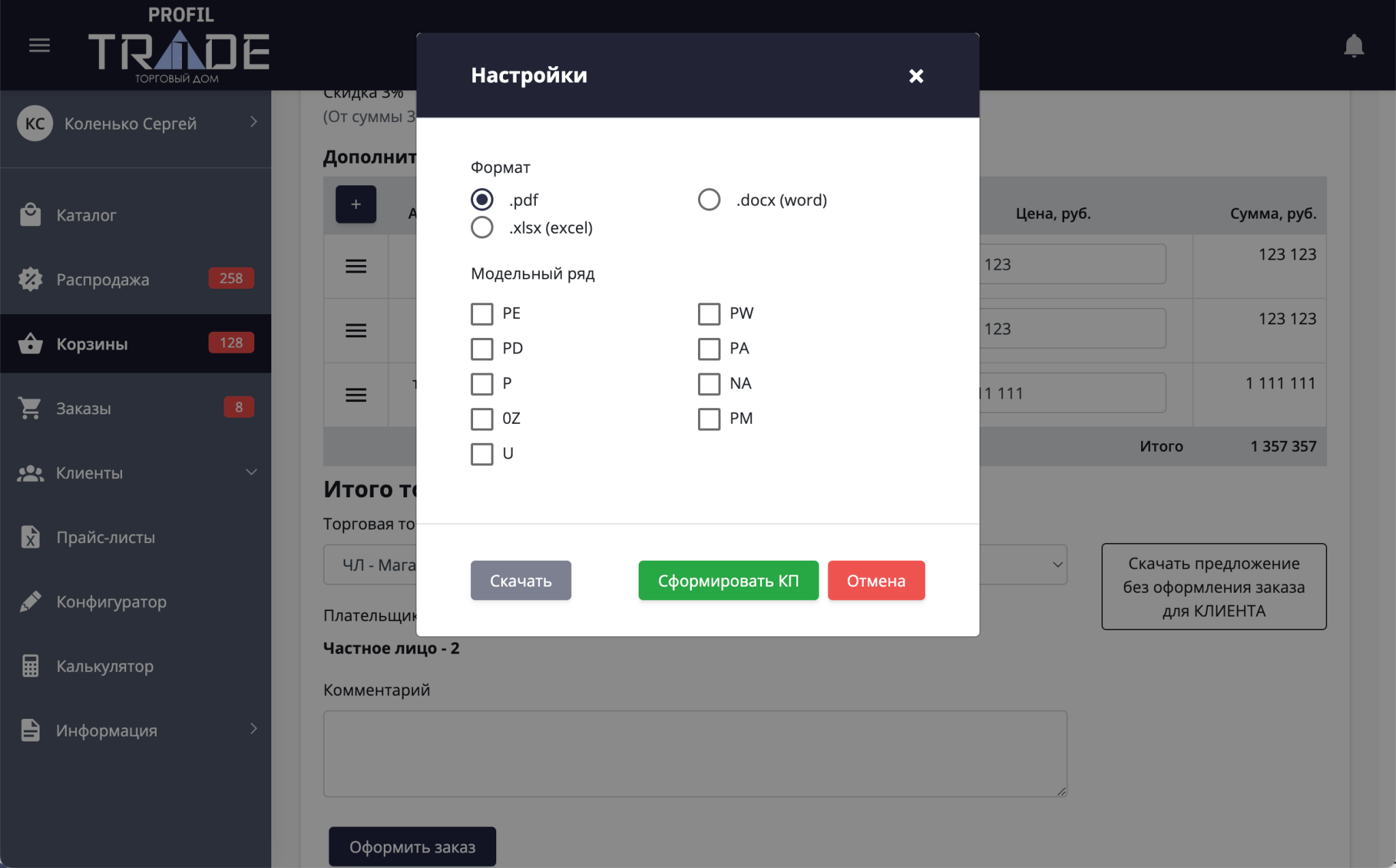 Для того, чтобы коммерческое предложение в полной мере представляло торговую марку дилера, в системе Дилер365 мы предусмотрели интерфейс, позволяющий отредактировать коммерческую информацию дилера о себе: наименование партнёра, адрес партнёра, телефоны для связи, адрес электронной почты, а также файл логотипа торговой марки. При выборе в корзине торговой точки, информация из торговой точки (телефон, адрес и т.д.) перекрывает торговую информацию о партнере. Вся эта информация служит для формирования файла коммерческого предложения конечному покупателю.